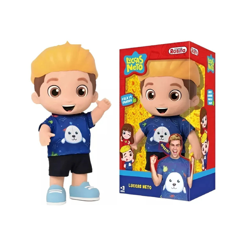 - Contém: 1 Boneco Luccas Neto Com Som 15 Frases 28Cm