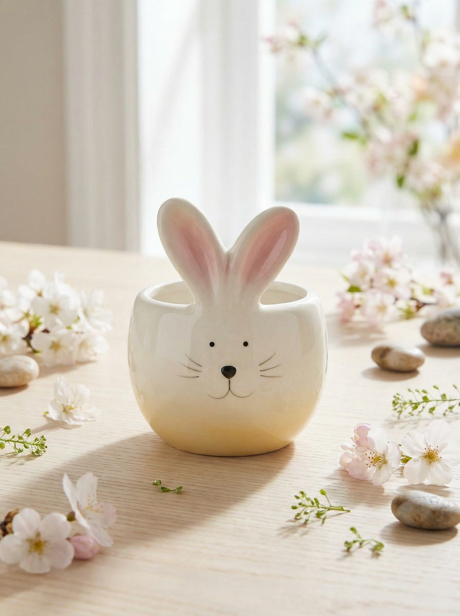 Este encantador bowl coelho da páscoa é a peça perfeita para adicionar charme e delicadeza à sua decoração de Páscoa. Confeccionado em cerâmica de alta qualidade, apresenta um design adorável com orelhas erguidas em tom rosado suave no interior, corpo em branco cremoso com elegante gradiente amarelado na base, e detalhes faciais delicadamente pintados à mão. Suas linhas suaves e acabamento impecável transmitem sofisticação e aconchego, tornando-o ideal tanto como pela decorativa quanto funcional.