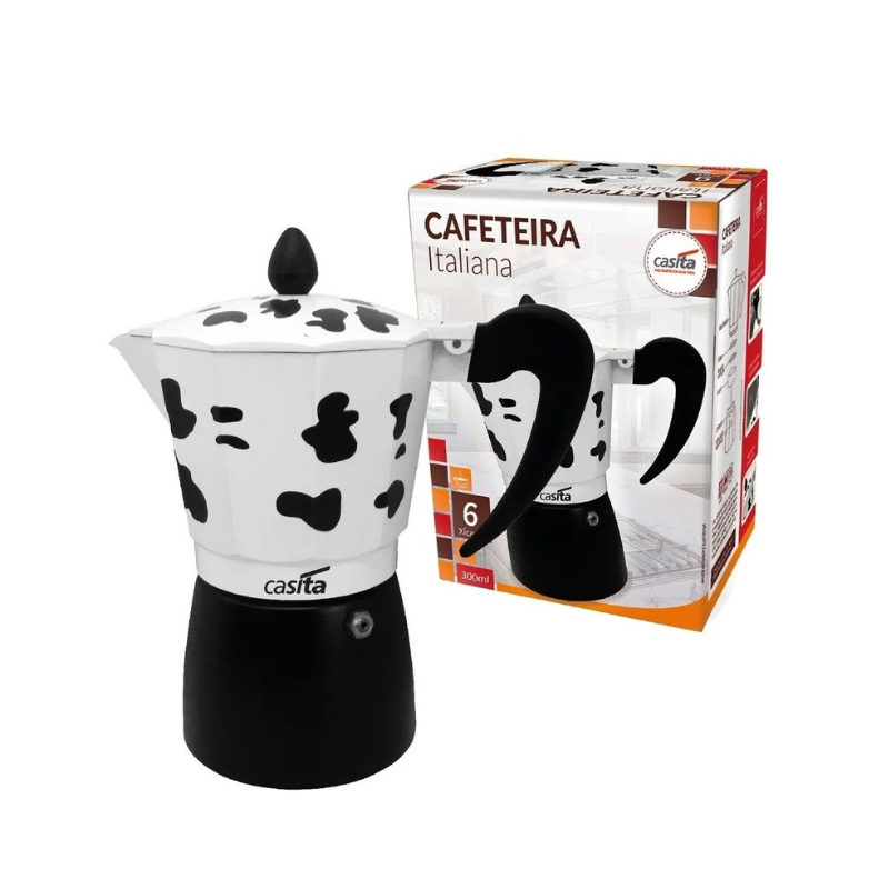 1 Cafeteira Italiana 300ml de Alumínio Estampa de Vaquinha