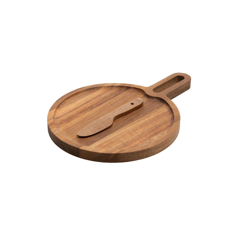 Produzido em madeira de acácia, o conjunto possui acabamento refinado que destaca a textura e o tom quente da madeira, trazendo charme e aconchego para qualquer ocasião. A faca complementa a tábua com funcionalidade e beleza, ideal para queijos, frios e petiscos.