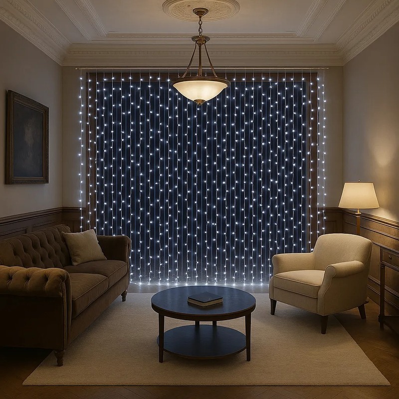 Cortina LED decorativa. Pode ser utilizada para decoração de festas, casamentos ou decoração de natal.