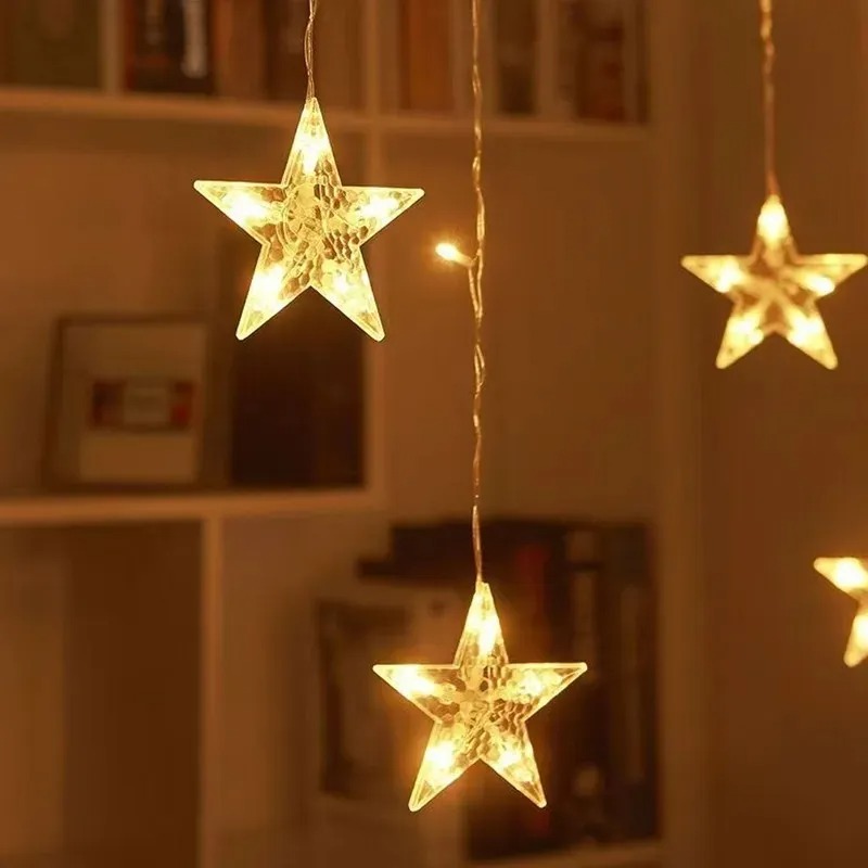 Cortina Estrela 136 Lâmpadas 127V Branco Quente - 8 Funções