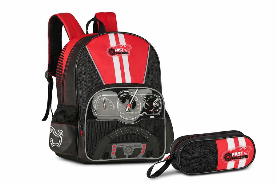 Kit Mochila e Estojo Escolar De costas Fast Machine