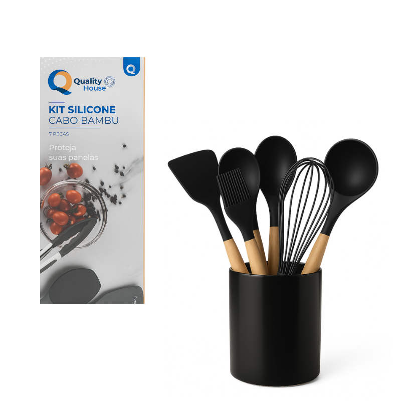 O Jogo de Cozinha de 7 peças é uma adição elegante e funcional para a sua cozinha, combinando a beleza da madeira com a praticidade do silicone. Com um design moderno e contemporâneo, este conjunto não apenas adiciona charme à sua cozinha, mas também oferece utensílios de alta qualidade para facilitar suas tarefas culinárias.